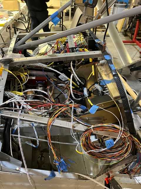 1 hr: Julian, Killian, Nolan, Samuel, Paxson, Charlie - While drilling, ruin left wing strut. Order new parts. - Test fit left wing wiring and pneumatic lines. - Plan wiring runs through center tunnel. Decide to run these on the belly of the plane. - Work on right wing upper strut fitting (try to avoid the mistake from the left wing). 1491 hr cummulative