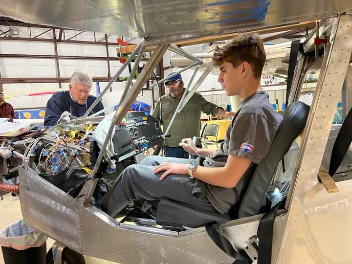 2.5 hr: Wyatt, Zee, Ishan 1.5 hr: Killian, Grace, Adrienne, Abel - One cabin forward channel isn't right and will be replaced. - Almost finish the riveting of the cabin belly. - Begin fitting engine mount to firewall. - Begin fitting cabin's engine mount brackets, and prepare shims for lower pair. - Finish bolting the wing strut bracket to the lower longerons (tight fit for the nuts). - Work on mounting magnetometer plate; rivets are loose and must be drilled out. - Finish fitting fuel tank to wing, and begin fitting fuel sender to the tank. 794 hr cummulative